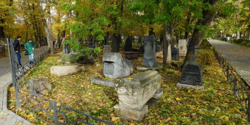 Собор был разрушен в середине 1930-х годов, теперь на этом месте – сквер и памятник писателю Ивану Гончарову. Всесвятский погост Устройство сквера или парка на месте не функционирующего кладбища кажется наилучшим вариантом последующего использования кладбищенской территории, из уважения к памяти тех, кто здесь упокоился однажды. Именно таким образом, ещё до революции 1917 года, Симбирская городская дума собиралась поступить с городским Всесвятским кладбищем. Это кладбище было основано после того, как в конце 1771 года был издан указ, запрещавший в пределах Российской империи хоронить покойников при церквях внутри городов и требовавший открытия новых кладбищ за городской чертой. Городская черта в то время фактически ограничивалась Большой Саратовской, Гончаровской улицей. Но за сто лет после основания Всесвятского кладбища город основательно разросся, охватив даже кладбищенскую территорию. В 1874 году в городе стало действовать Новое городское – теперь Старое кладбище, на улице К. Маркса. Сохранявшиеся могильные холмики на Всесвятском кладбище предлагалось разровнять, территорию засадить деревьями, устроить дорожки, какие-то площадки для игр чинной дореволюционной детворы. Не выгорело. Зато в советское время на территории бывшего Всесвятского кладбища были построены ДК имени Чкалова, школа №18. При строительстве, как рассказывают очевидцы, массово обнаруживались человеческие кости, так, что черепами чуть ли не играли в футбол. А одно из найденных при этом гранитных надгробий, принадлежавшее семье мещан Ковшениных, было увезено на улицу Орлова и использовалось в качестве скамеечки-завалинки. Человек, таким образом фактически спасший этот камень, бывший спортсмен, неоднократно травмированный, уверял, что сидение на нагретом солнцем надгробии очень помогало и утишало суставные боли! Сквер И.Н. Ульянова Но одно из старинных симбирских кладбищ, аристократический некрополь Симбирского Покровского монастыря, таки стало сквером имени Ильи Николаевича Ульянова, отца вождя мирового пролетариата В.И. Ульянова-Ленина, директора народных училищ Симбирской губернии. Уважаемого педагога и влиятельного в губернии человека, скоропостижно скончавшегося в январе 1886 года, И.Н. Ульянова похоронили здесь, на лучшем в городе кладбище, среди уважаемых дворян, чиновников и духовенства, рядом с блаженным Андреем Огродниковым, симбирским юродивым, небесным покровителем нашего города. После победы революции монастырь закрыли, а потом и вовсе снесли. От кладбища, на котором было тесно от могил «столбового» дворянства, оставили единственную могилу Ильи Николаевича, а вокруг разбили сквер. Из увезённых с кладбища мраморных памятников, говорят, делали каменные щитки, к которым крепили электросчётчики. Оставшиеся на кладбище надгробия завалили в расположенные под землёй склепы, засыпав сверху слоем почвы, на котором высадили деревья. Недовывезенные надгробия то и дело появлялись из-под земли сквера И.Н. Ульянова, немало смущая гостей города, которых в советские времена обязательно возили на могилу отца Владимира Ильича. В 1957 году сквер украсился памятником Илье Николаевичу работы выдающегося советского скульптора Матвея Манизера – сверху бюст господина директора, а в углублении на постаменте – деревенский мальчик в лаптях и с букварём, с